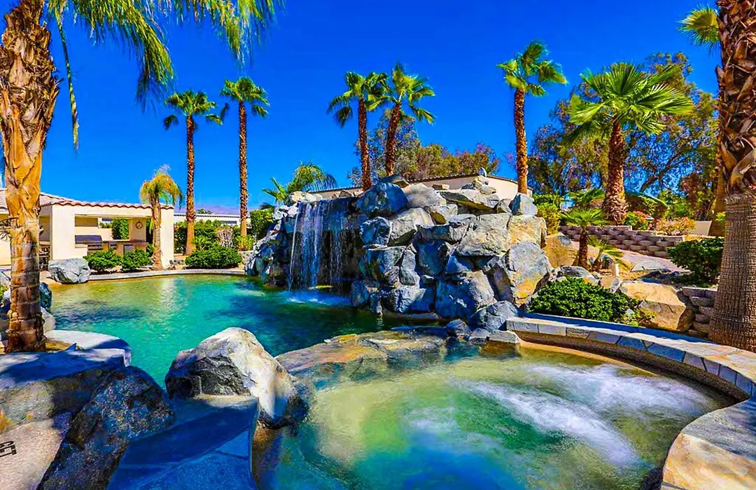 Deze 3-slaapkamer Cool Pool Retreat Villa Bermuda Dunes ligt binnen 2 km van de Indian Wells Tennis Garden en biedt een patio met uitzicht op de berg.