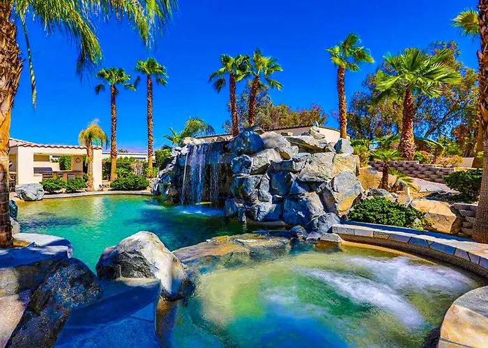 De gesitueerde in Bermuda Dunes Cool Pool Retreat Villa beschikt over een badkamer met een bidet, een inloopdouche en een wastafel. Een haardroger, badjassen en handdoeken zijn inbegrepen om uw comfort te verhogen.